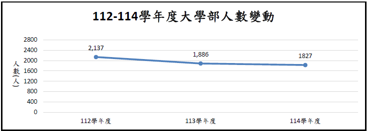 | 大學部(含大漢專班) | 2,137 | 1,886 | 1,827 |